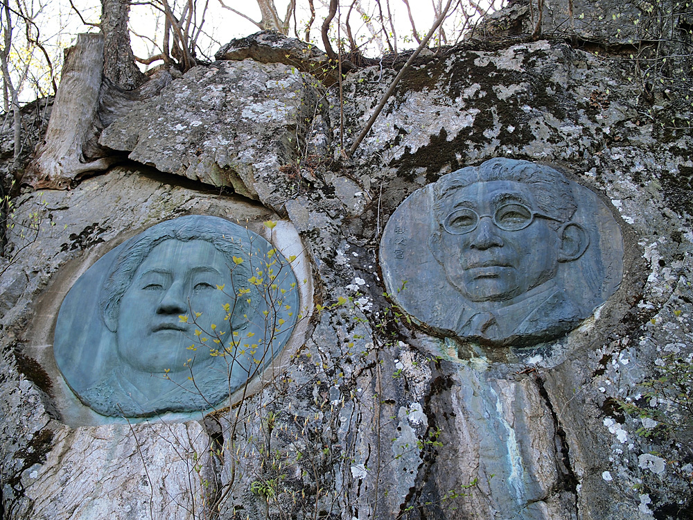 奥宮の鳥居を過ぎると秩父宮両殿下レリーフの霧藻ヶ峰休憩舎。