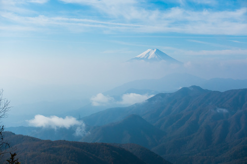 朝靄に浮かぶ富士山↓